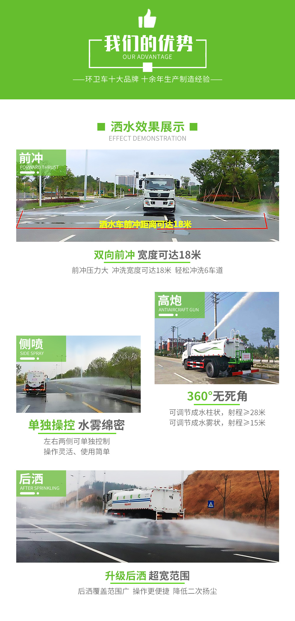 整車配備:安徽全柴動(dòng)力股份有限公司,全柴95馬力發(fā)動(dòng)機(jī),5檔變速箱,6.00R鋼絲胎,2600軸距,油剎。專用功能配置:罐體實(shí)際容積約為2.8立方米,采用武鋼優(yōu)質(zhì)碳鋼板卷壓成型。配備專用灑水泵,自吸自排,前噴后灑、后對(duì)沖、側(cè)噴、后工作平臺(tái)及灑水高壓炮。灑水泵自吸高度為6米左右,整車灑水寬度14米左右,后工作平臺(tái)水炮可調(diào)成:直沖狀、大雨、中雨、小雨、霧狀、有效射程≥28米,整車帶接頭、水位計(jì),自流閥及自吸功能。后平臺(tái)主管道有一個(gè)一寸的澆花接口,附送2根3米水管,1個(gè)爬梯,兩側(cè)及后保險(xiǎn)杠。