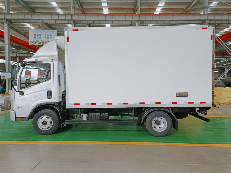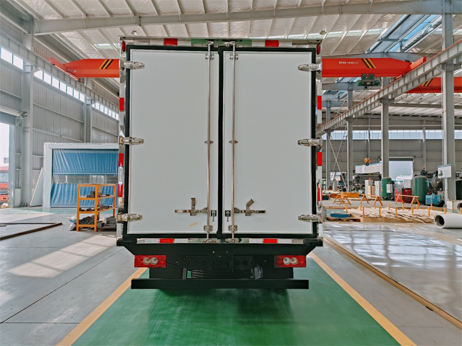 廂體底部為塑鋼花紋板,廂內(nèi)側(cè)面帶圍裙,前部排水孔,門邊條采用防雨設(shè)計(jì)和迷宮式橡膠密封條,鋁合金型材包邊,不銹鋼包角,不銹鋼門鎖,加厚型不銹鋼后門合頁及鎖件,廂體內(nèi)采用LED照明燈。