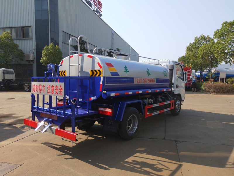 東風5噸灑水車吸程≧7米,灑水寬度≧14-16米,射程≧25-30米,引水時間<5min,流量60m3/h。前沖(噴)、后灑、帶側噴(花灑)、帶后工作平臺、平臺上安裝綠化灑水高炮(炮噴射形狀可調節:直沖、大雨、中雨、毛毛雨、霧狀、可連續調節,360°旋轉),配消防接口,自流閥,濾網,帶自吸自排功能。配備大功率專用灑水泵,泵可自吸自排,安裝過濾網,帶消防接口,可通過消防栓進水,帶自流閥,隨車選裝20米綠化卷盤,可噴灑農藥,罐體金屬漆。罐體有橢圓和方圓罐兩種,可根據用戶的要求定做。了解東風5噸灑水車價格及5噸灑水車報價,請與程力廠家陶經理聯系18872999066