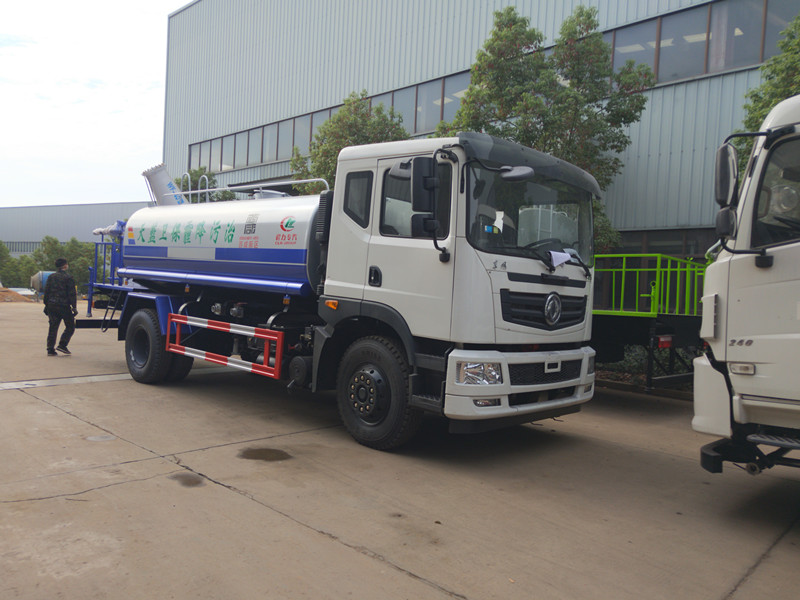 東風抑塵車上裝配置:配備大功率灑水泵,具有自吸自排功能,垂直吸程>6米。帶前部沖洗路面噴灑裝置、后部扇形降塵噴灑裝置,兩側面噴灑裝置,后部工作平臺、平臺上安裝綠化灑水炮(炮噴射形狀可調(diào)),可調(diào)直沖狀、大雨、中雨、毛毛雨,可連續(xù)調(diào)節(jié),自流閥及消防接頭各1個、水管3米2根。罐體內(nèi)做環(huán)氧樹脂防腐處理。