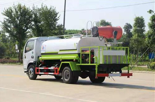 抑塵車吸程≧7米,灑水寬度≧14-16米,射程≧25-40米,引水時間<5min,流量60m3/h。前沖(噴)、后灑、帶側噴(花灑)、帶后工作平臺、平臺上安裝綠化灑水高炮(炮噴射形狀可調節:直沖、大雨、中雨、毛毛雨、霧狀、可連續調節,360°旋轉),配消防接口,自流閥,濾網,帶自吸自排功能。配備大功率專用灑水泵,泵可自吸自排,安裝過濾網,帶消防接口,可通過消防栓進水,帶自流閥,此車尾部加裝大功率農藥噴灑炮,噴灑狀態霧狀,有效射程15-45米,外部平臺帶獨立的機組。