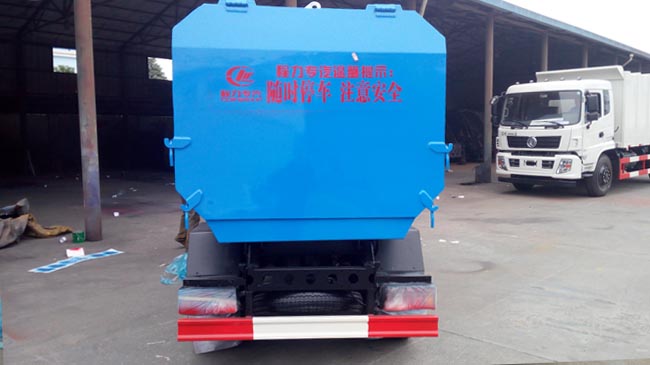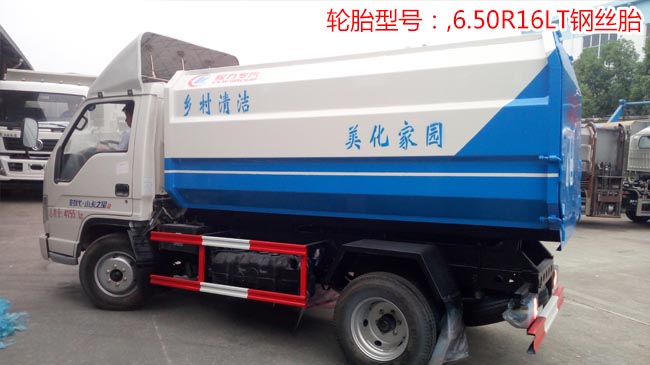 垃圾車上裝配置:全密封式垃圾箱體,采用優(yōu)質(zhì)武鋼產(chǎn)碳鋼板焊接制作,邊板折彎強(qiáng)化,箱體右側(cè)配液壓掛桶提升機(jī),可掛國標(biāo)120升或240升塑料垃圾桶,提升速度快,穩(wěn)定性高,尾門彈簧鎖扣帶橡膠密封條,箱內(nèi)設(shè)污水欄,箱體雙缸液壓自卸,多路閥手柄操控。