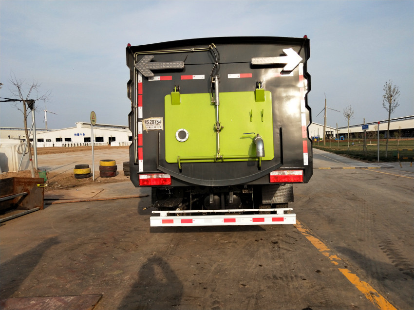 8:高壓噴淋清洗裝置在傾倒垃圾后可對污水箱進行自動清洗,大大減輕了操作人員的勞動強度。