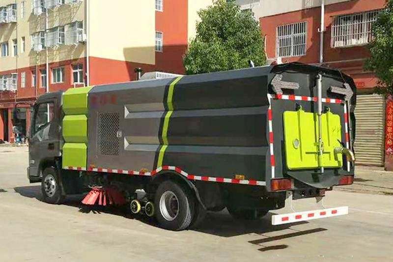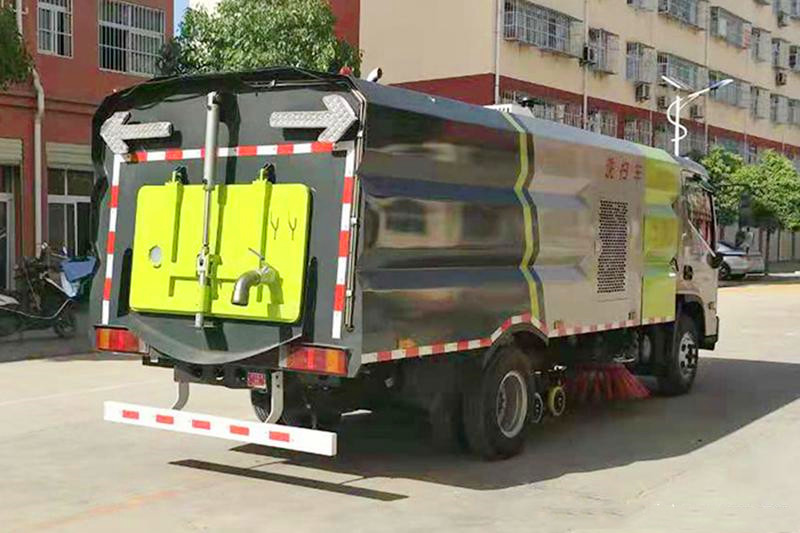 11、現代盛圖5噸洗掃車的垃圾箱內帶有自潔功能,在垃圾傾倒完成后可將箱內的殘留垃圾沖洗干凈,減輕環衛工人的負擔。
