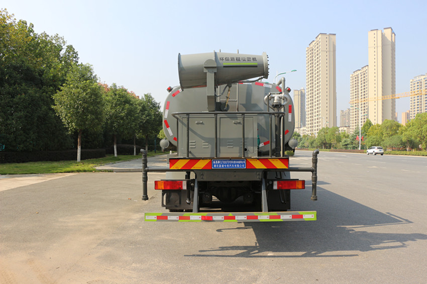 上裝配置:罐體采用5mm厚武鋼集團(tuán)供應(yīng)的罐車專用板材制作,容積:20立方;罐內(nèi)3道防浪隔板具有防波作用,減低罐內(nèi)液體的沖擊。配備國內(nèi)大功率灑水車專用水泵,可自吸自排,引水時(shí)間<15min,流量60m3/h,揚(yáng)程90米。東風(fēng)天龍灑水車其它專用部分標(biāo)配為:前沖、后灑、側(cè)噴、后工作平臺(tái)、360度可調(diào)節(jié)綠化水炮,水泵垂直吸程≧7米,前沖灑水寬度≧16米,綠化水炮射程≧35米,自流閥、濾網(wǎng)、消防接口(可連接消防栓取水,可作應(yīng)急消防用)。罐前量管(觀察罐內(nèi)水位)、罐后爬梯、罐上罐口帶簡(jiǎn)易護(hù)欄、罐側(cè)雙炮筒、6米長(zhǎng)4寸鋼絲塑膠管兩根,罐體表面雙層油漆工藝,防銹、耐腐蝕,其余有廠家標(biāo)配。可選擇加裝加裝藥盤、氣動(dòng)控制閥、噴藥設(shè)備、罐內(nèi)防腐等。