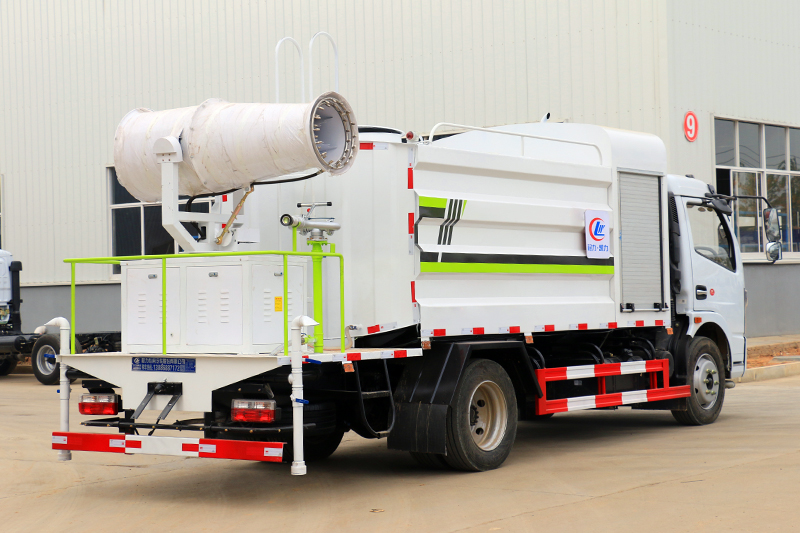 2個后灑(能均勻地將水灑在路面,一次灑水寬度14米)、2個側噴(花灑)(能均勻地將路旁綠化帶澆灌)、帶1個后工作平臺,平臺上安裝1個綠化灑水高炮(灑水炮可全方位旋轉,可連續調成直沖狀、大雨、小雨、毛毛雨,霧狀可調節沖洗高大樹木),引水時間<5min,流量90m3/h。帶1個消防接頭,帶1個自流閥,1個過濾裝置、人性化爬梯及側防護欄,安裝灑水音樂喇叭。