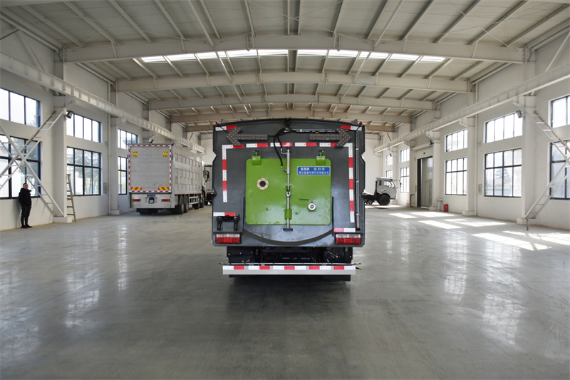 3、中置兩刷盤、中置寬吸盤、中置高壓沖水架可作為洗掃車使用,具有全洗掃、左洗掃、右洗掃三種作業模式。