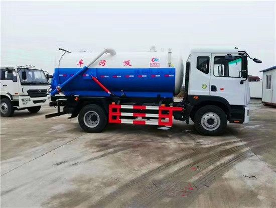 吸污車工作原理和吸糞車相同,但吸污車后蓋可以開啟,罐體可以舉升。加大了排污的方便性,故吸污車主要是抽一些粘稠類污物,如河道淤泥,下水道,建筑泥漿等。