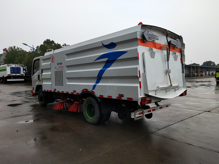 該車主要用于路面的機械化清掃作業;專用裝置為掃刷;防護材料:Q235B碳鋼,連接方式:左右側面防護裝置由專用裝置代替; 后下部防護裝置與大梁螺栓連接,后部防護斷面尺寸(mm):120×50,后部防護離地高度(mm):380; 上裝選裝新型外形樣式;ABS系統型號:VIE ABS-II,ABS系統生產廠家:浙江萬安科技股份有限公司;隨底盤選裝駕駛室. |