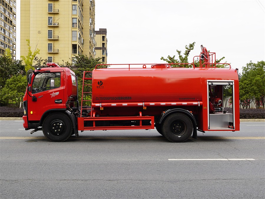 消防灑水車,又稱消防灑水兩用車、灑水消防兩用車、森林消防灑水車、學(xué)校消防灑水車、機(jī) 場消防灑水車、社區(qū)消防灑水、街道及鄉(xiāng)鎮(zhèn)和鄉(xiāng)村消防灑水功能。是一款集消防車和灑水車于一體的 兩用車,是介于消防車與灑水車之間,具有消防灑水一體化用途,與消防車相比雖缺少器材箱,但與 消防車的射程相同,具有同樣的消防功能。 功能介紹:與灑水車相比,繼承了灑水車的全部功能,同時(shí)也彌補(bǔ)了灑水車射程小,壓力小等 問題。消防灑水車除了裝備消防水泵及器材以外,還設(shè)有較大容量的貯水罐及水槍、水炮等?蓪⑺ 和消防人員輸送至火場獨(dú)立進(jìn)行撲救火災(zāi)。它也可以從水源吸水直接進(jìn)行撲救,或向其他消防車和滅 火噴射裝置供水。優(yōu)于消防車的功能:因?yàn)闆]有消防車器材箱,底盤高度及車輛寬度更適應(yīng)山間、鄉(xiāng) 鎮(zhèn)、鄉(xiāng)村的路況,是森林消防、鄉(xiāng)鎮(zhèn)和鄉(xiāng)村消防的有利消防工具。